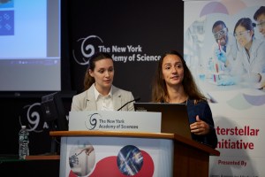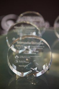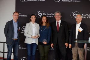 Team 8, consisting of Carlotta Mummolo, New Jersey Institute of Technology, Teppei Matsui, University of Tokyo, and Eleni, won an Outstanding Team Presentation Award on the last day of the Interstellar Initiative! They presented a proposal they drafted during the 3-day event, titled “Elucidation of aging-driven decline of cognitive and motor behavior through an interdisciplinary approach”. Thanks, teammates! (In the pictures, Eleni and Carlotta are presenting the team’s work, and later they receive the award [left to right: Frank Kirchhoff, University of Saarland, Germany; Ellis Rubinstein, President & Executive Officer of the New York Academy of Sciences; Toshio Suda, National University of Singapore]. All participants, along with mentors and organizers smile for the family photo). All photos are courtesy of the New York Academy of Sciences.