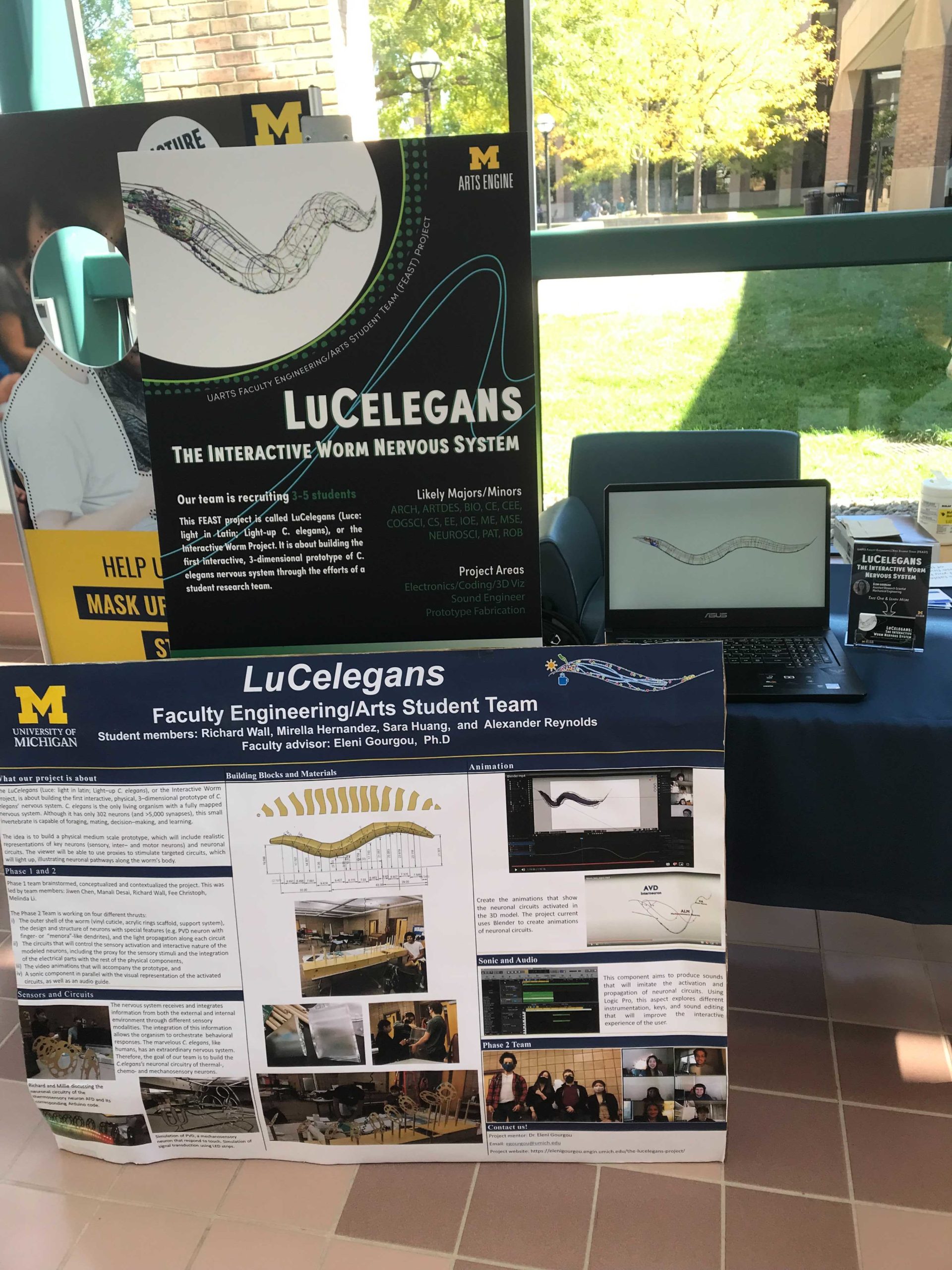 The LuCelegans (Luce: light in latin; Light–up C. elegans), or the Interactive Worm Project, is about building the first interactive, physical, 3–dimensional prototype of C. elegans’ nervous system.
